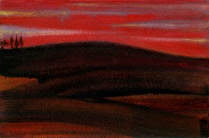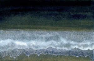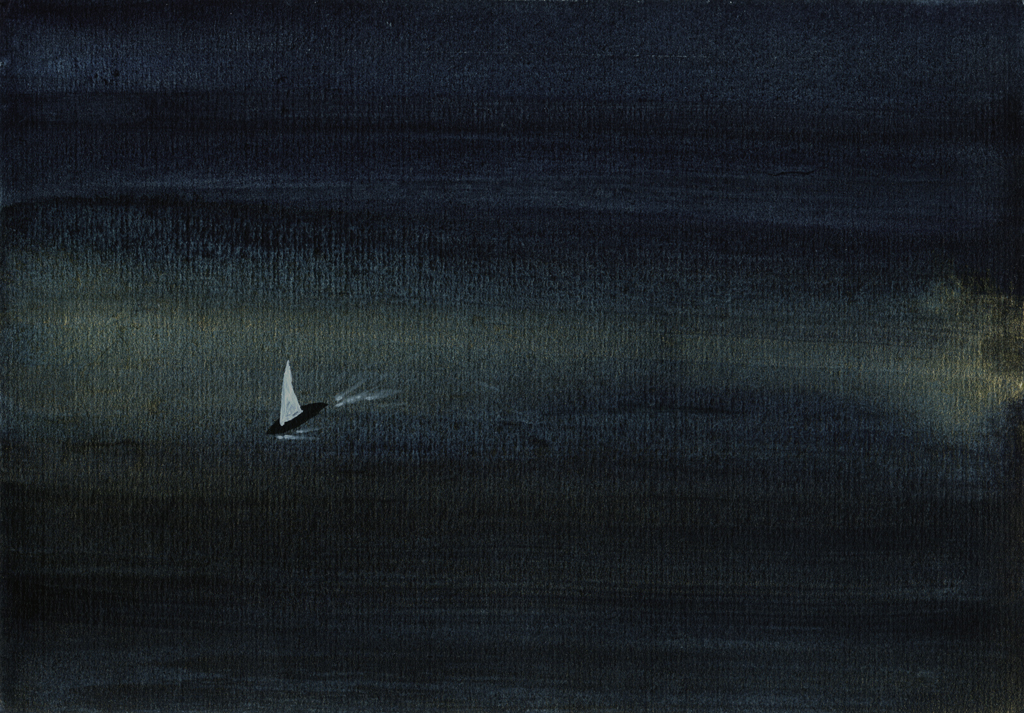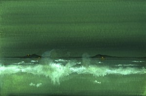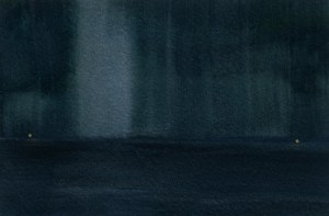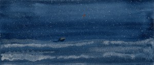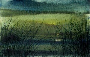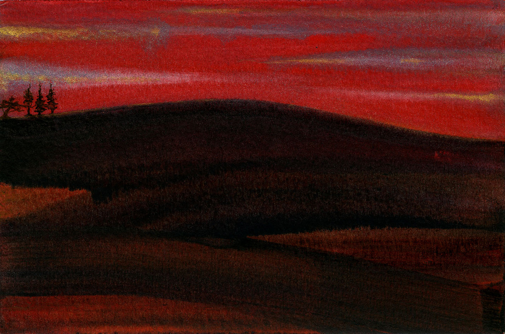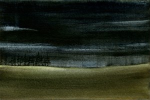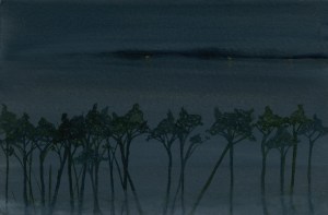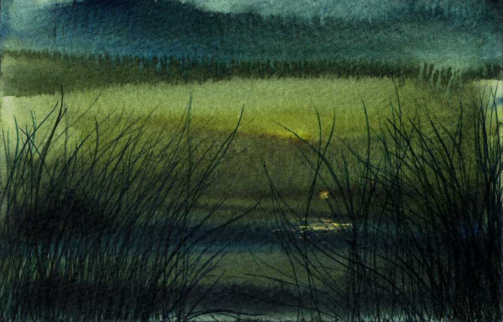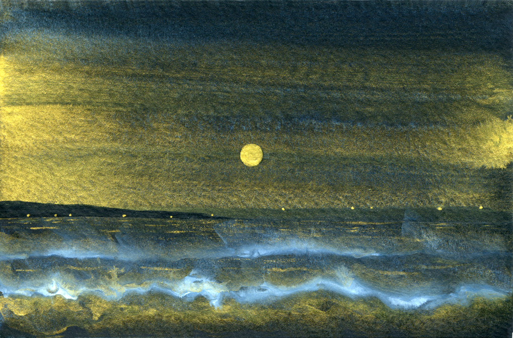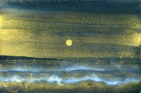 Gold Moon Rising, 2008, watercolor on cardboard