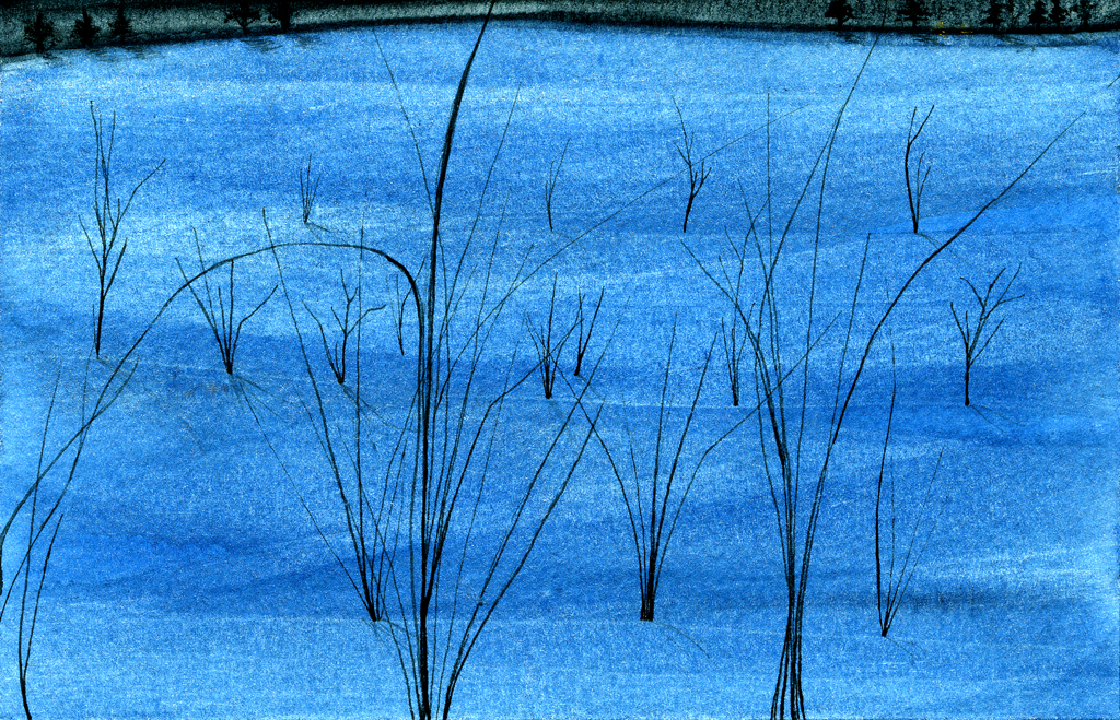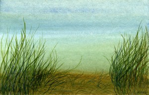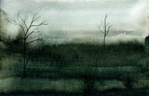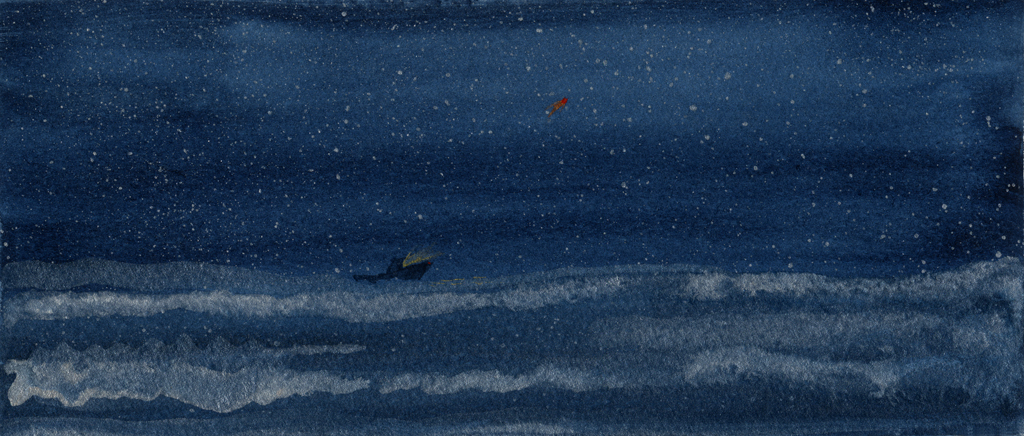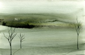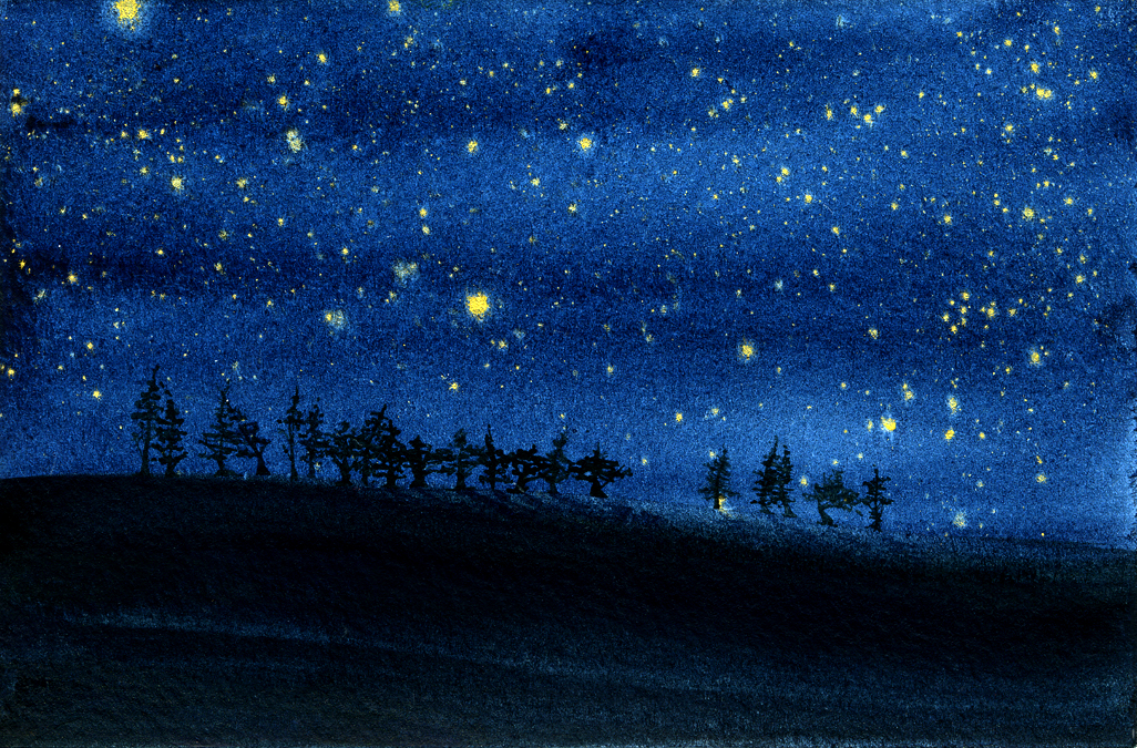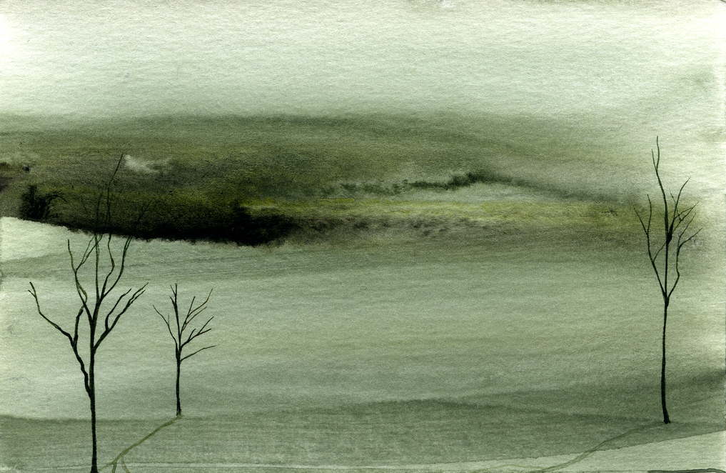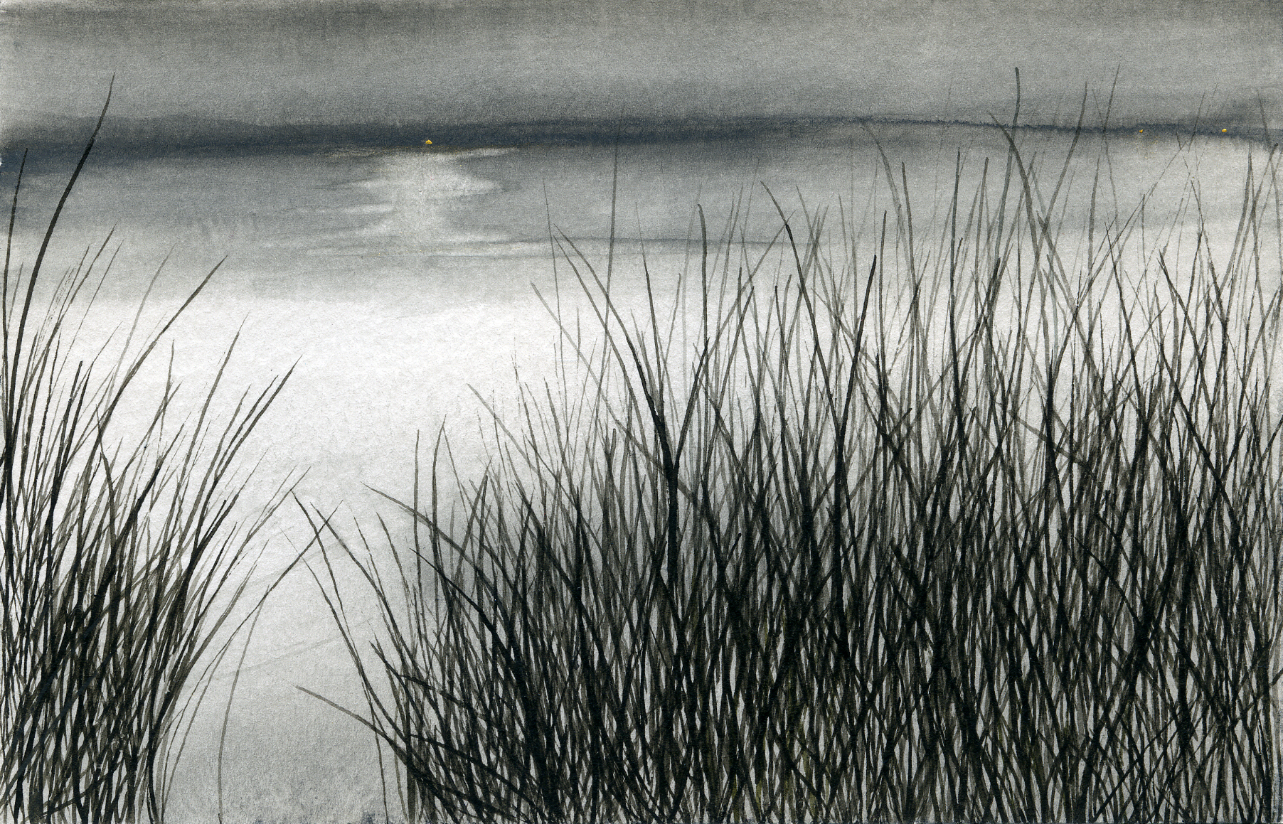 Gold Moon Rising, 2008, watercolor on cardboard